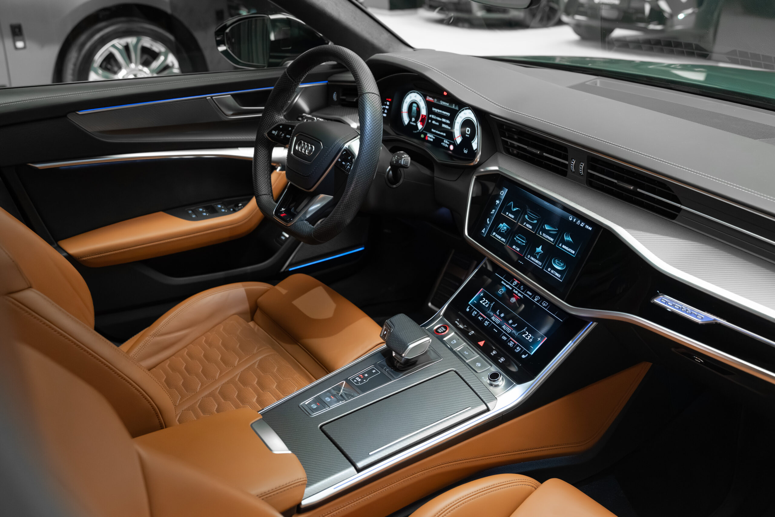 • Interior: Piele Valcona de culoare maro cognac