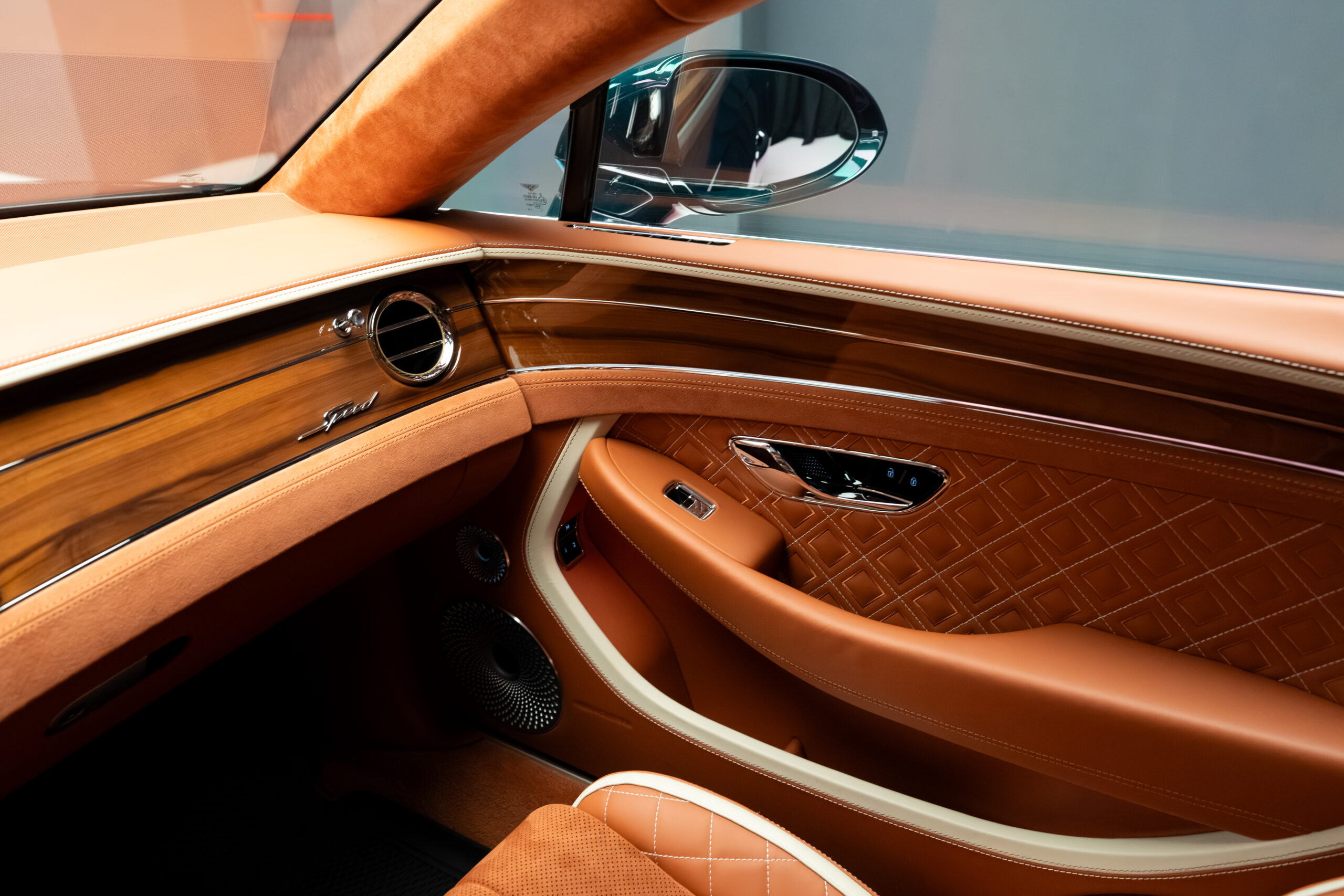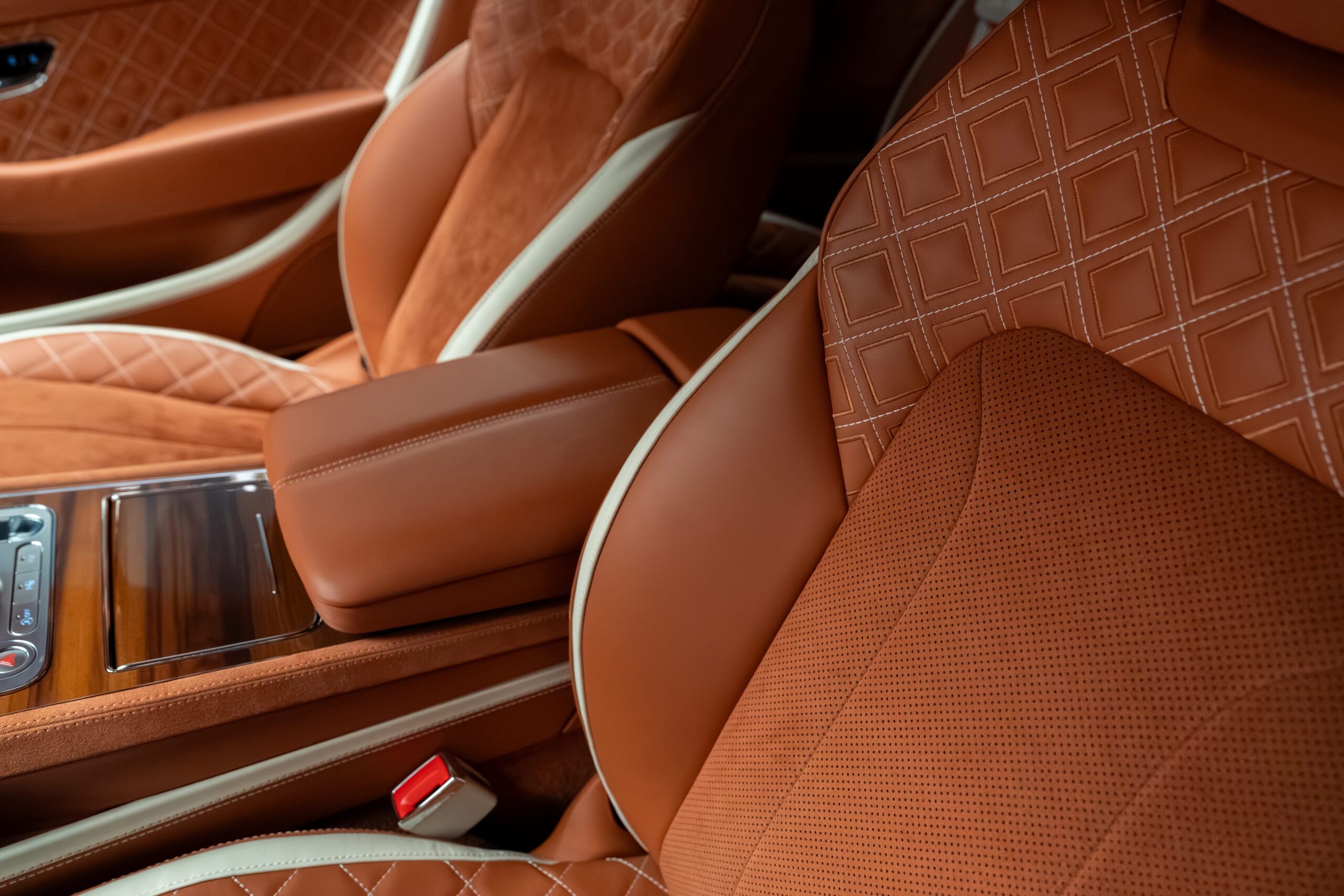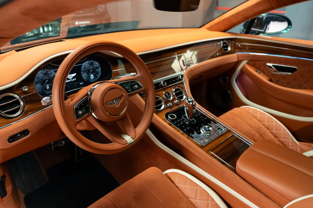 • Embleme embosate Bentley cu cusături contrastante