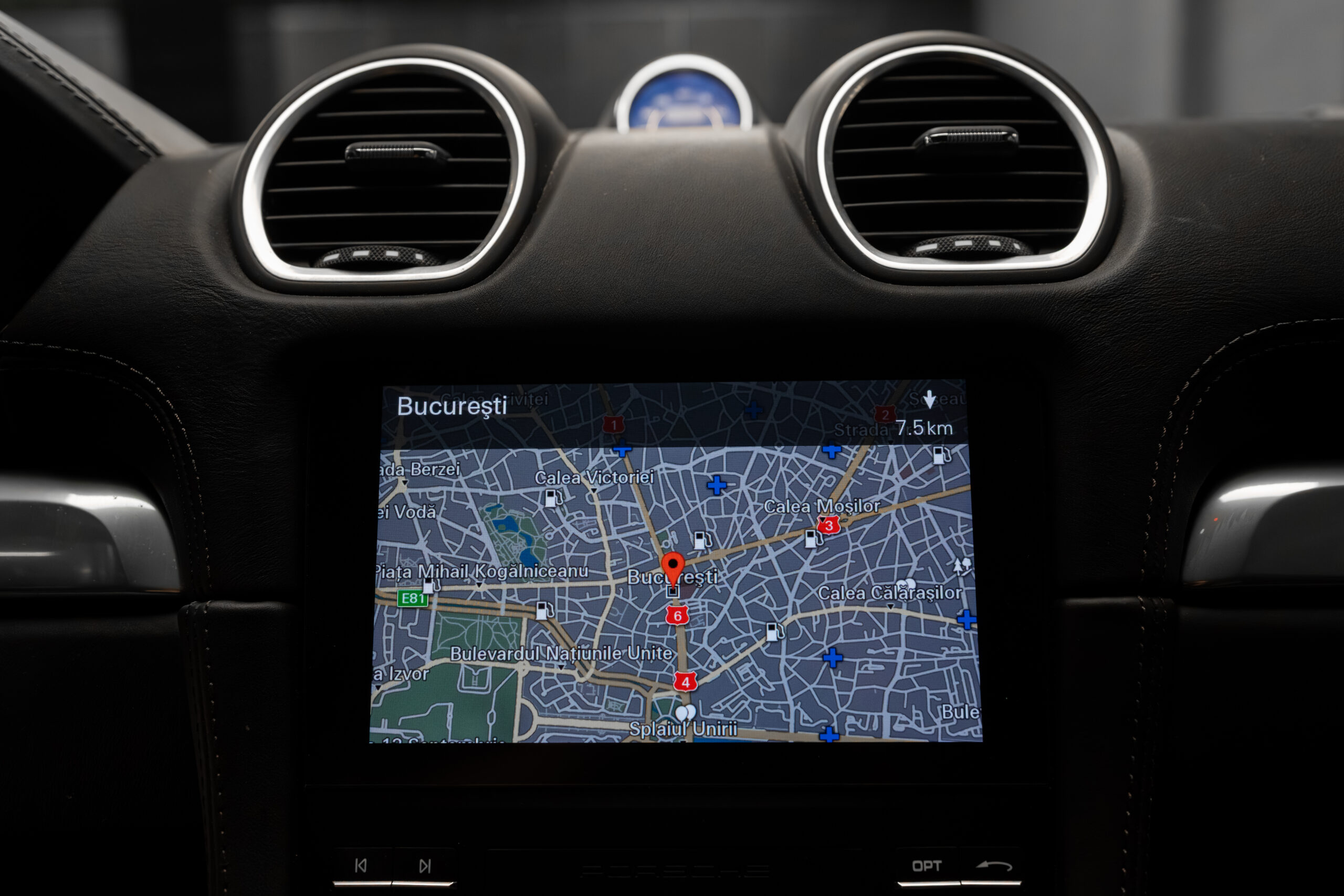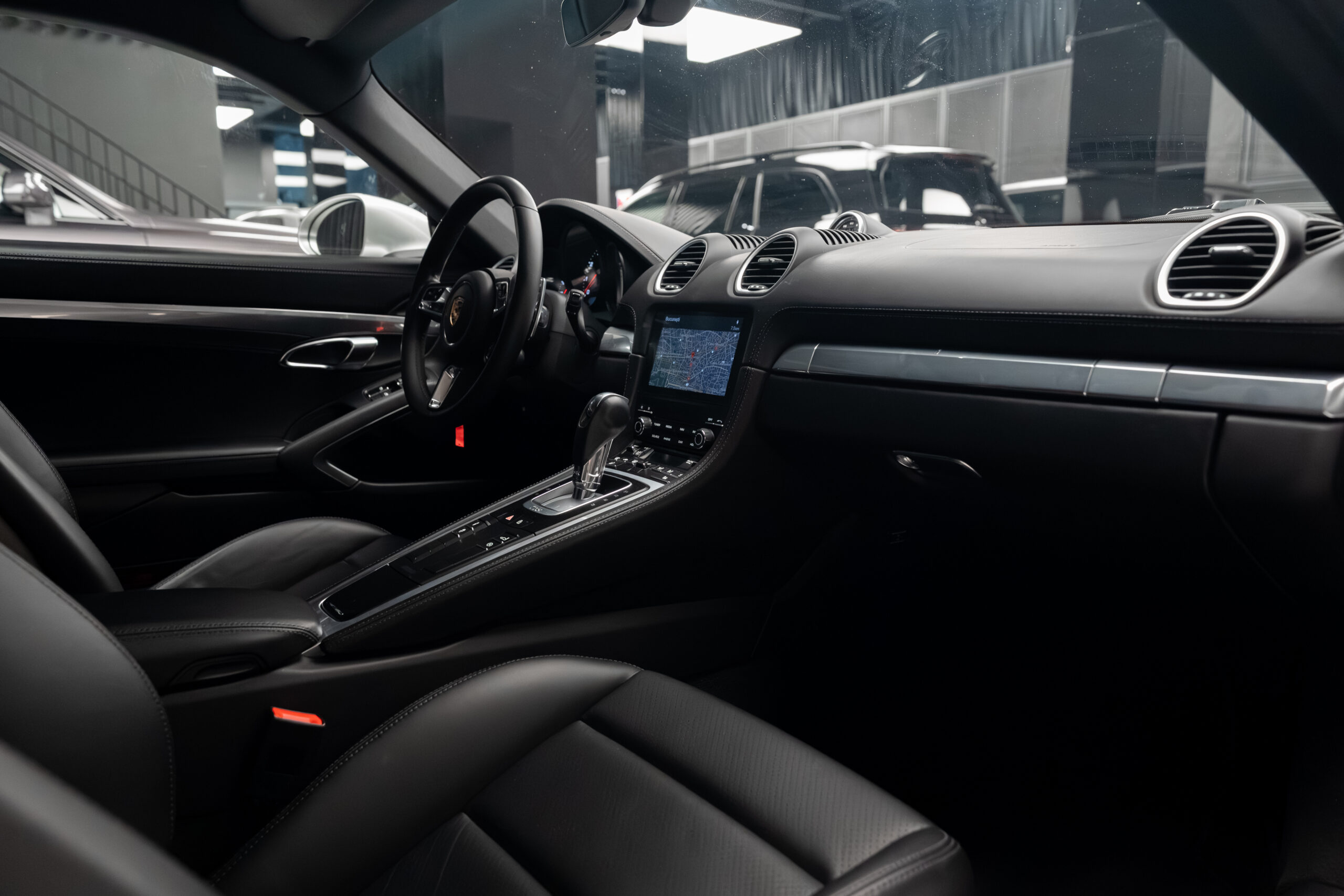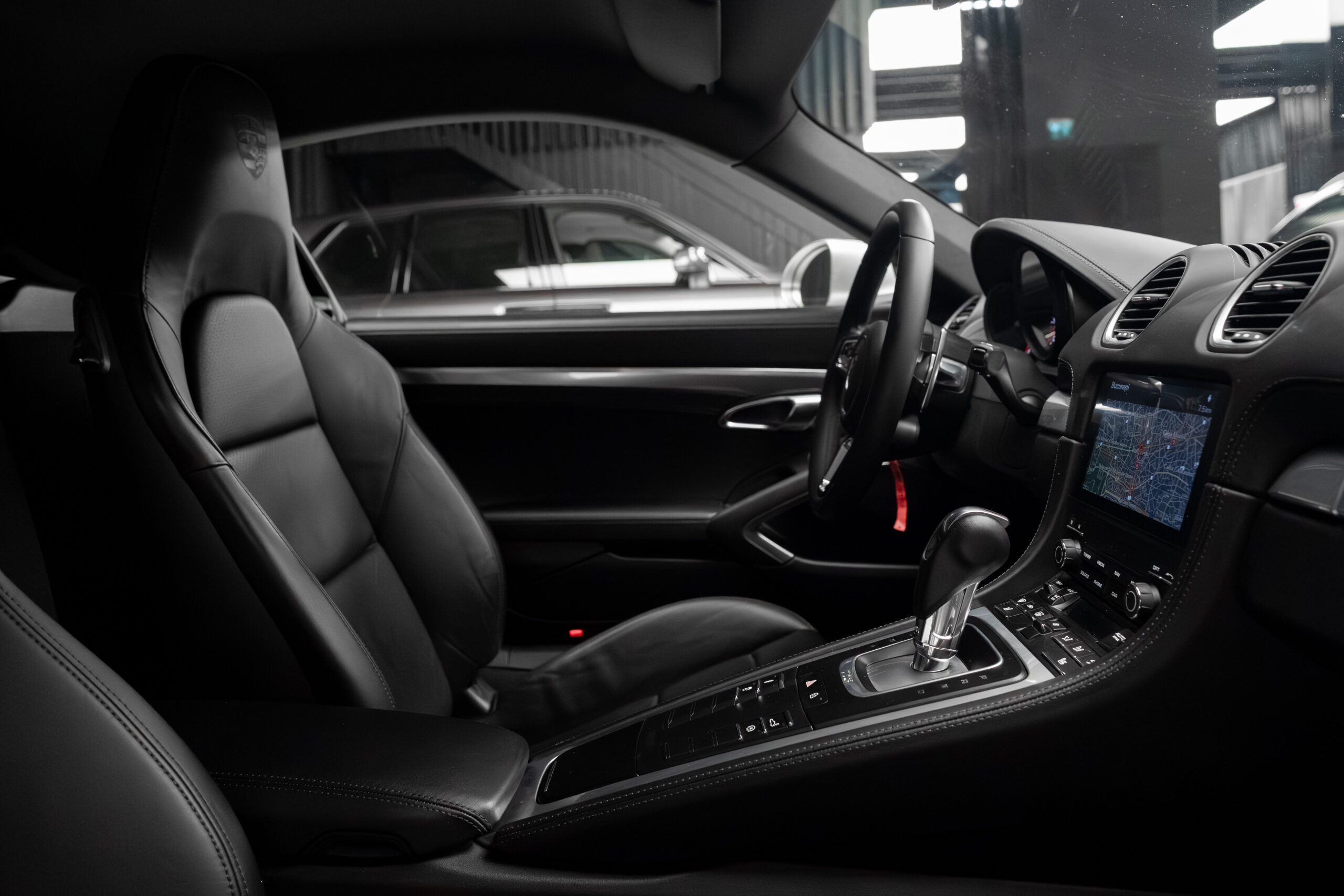 • Interior din piele de culoare neagră