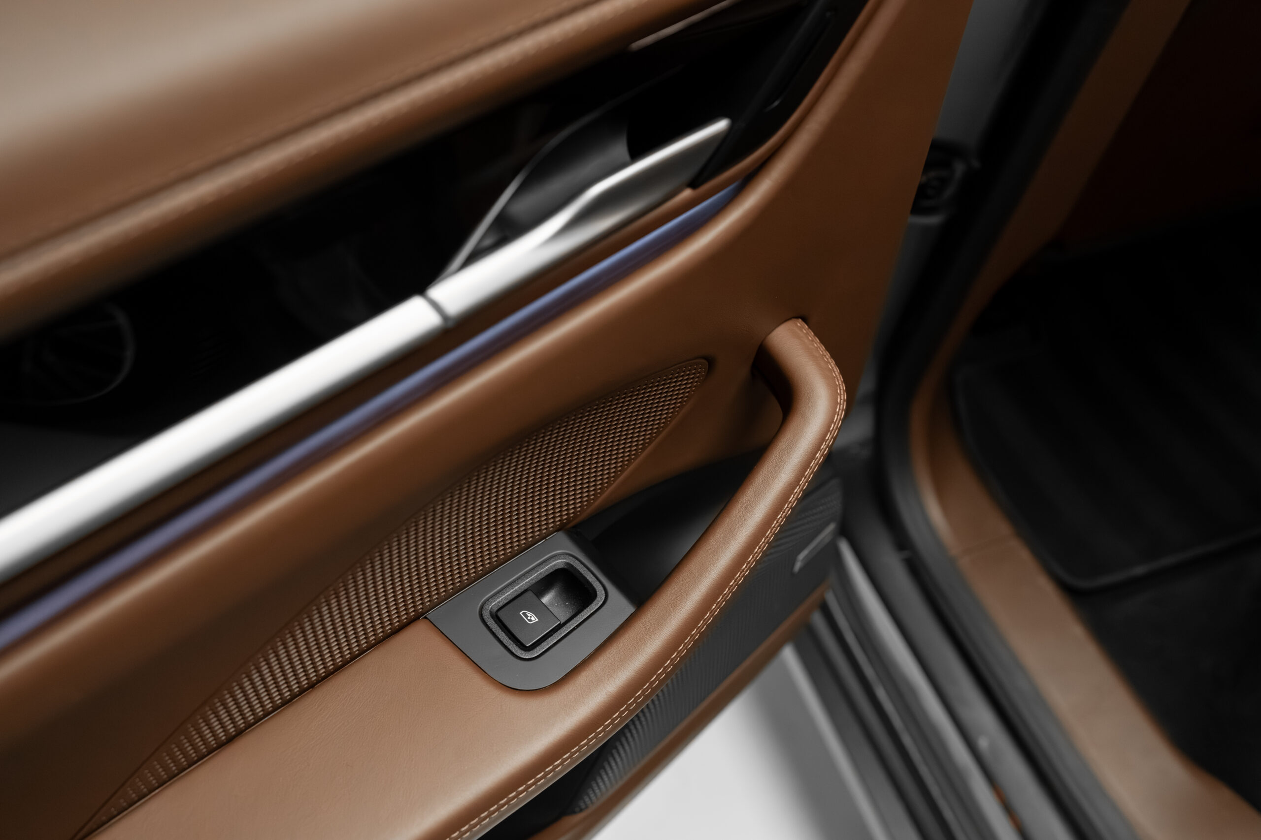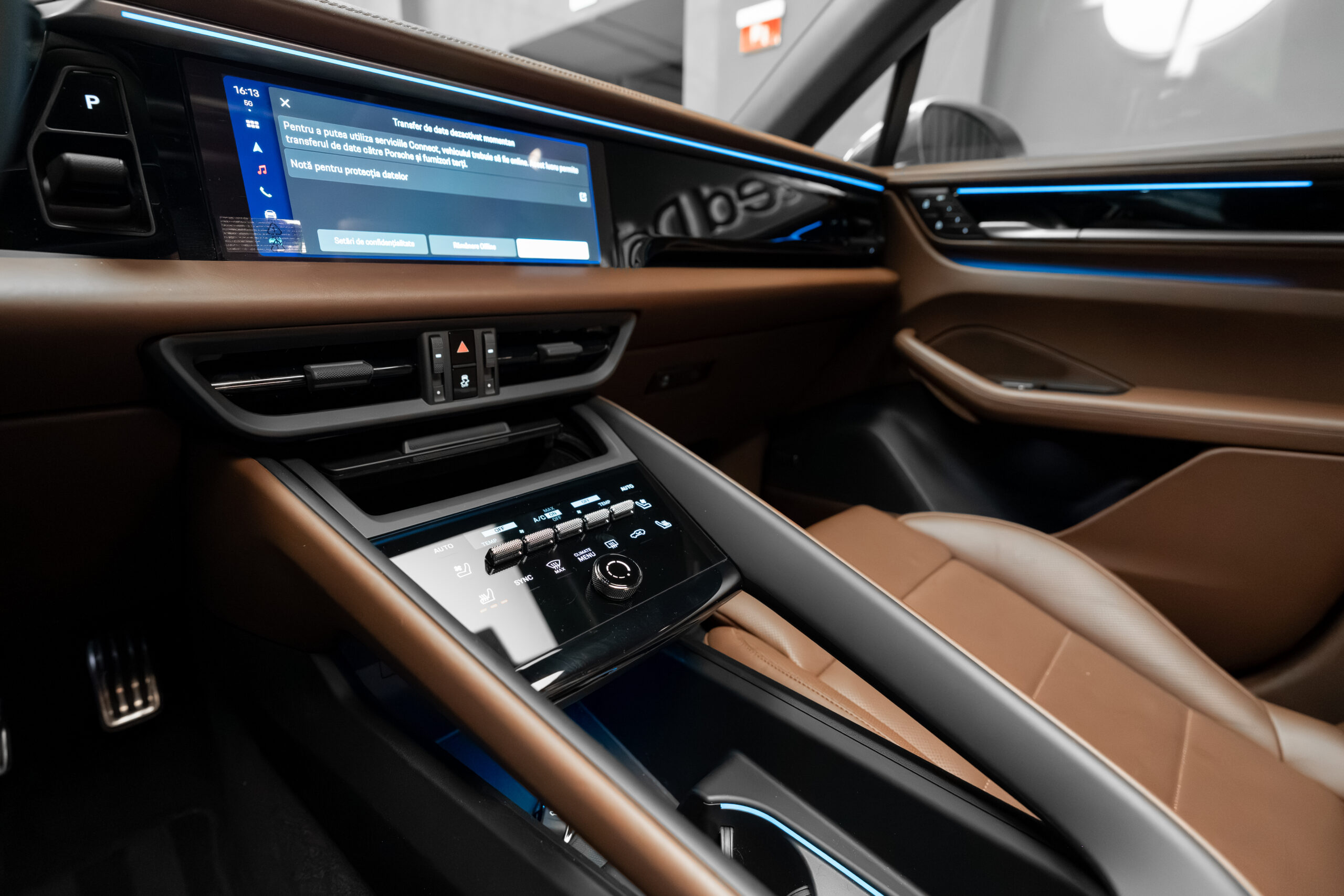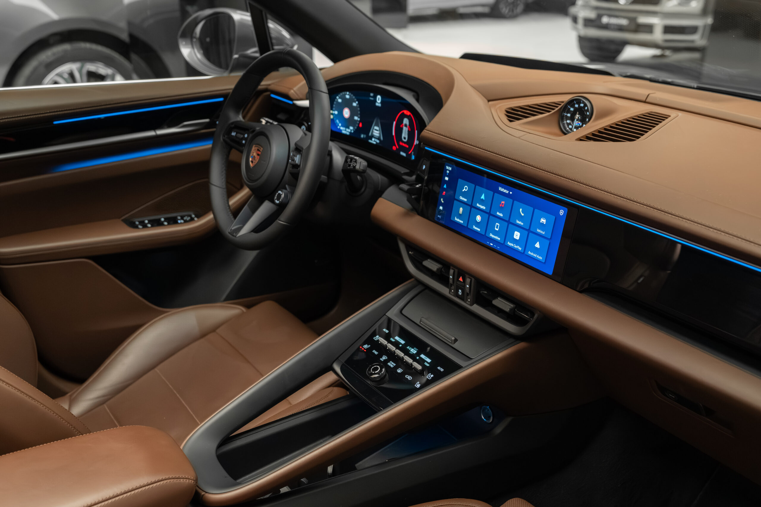 • Interior din piele de culoare maro