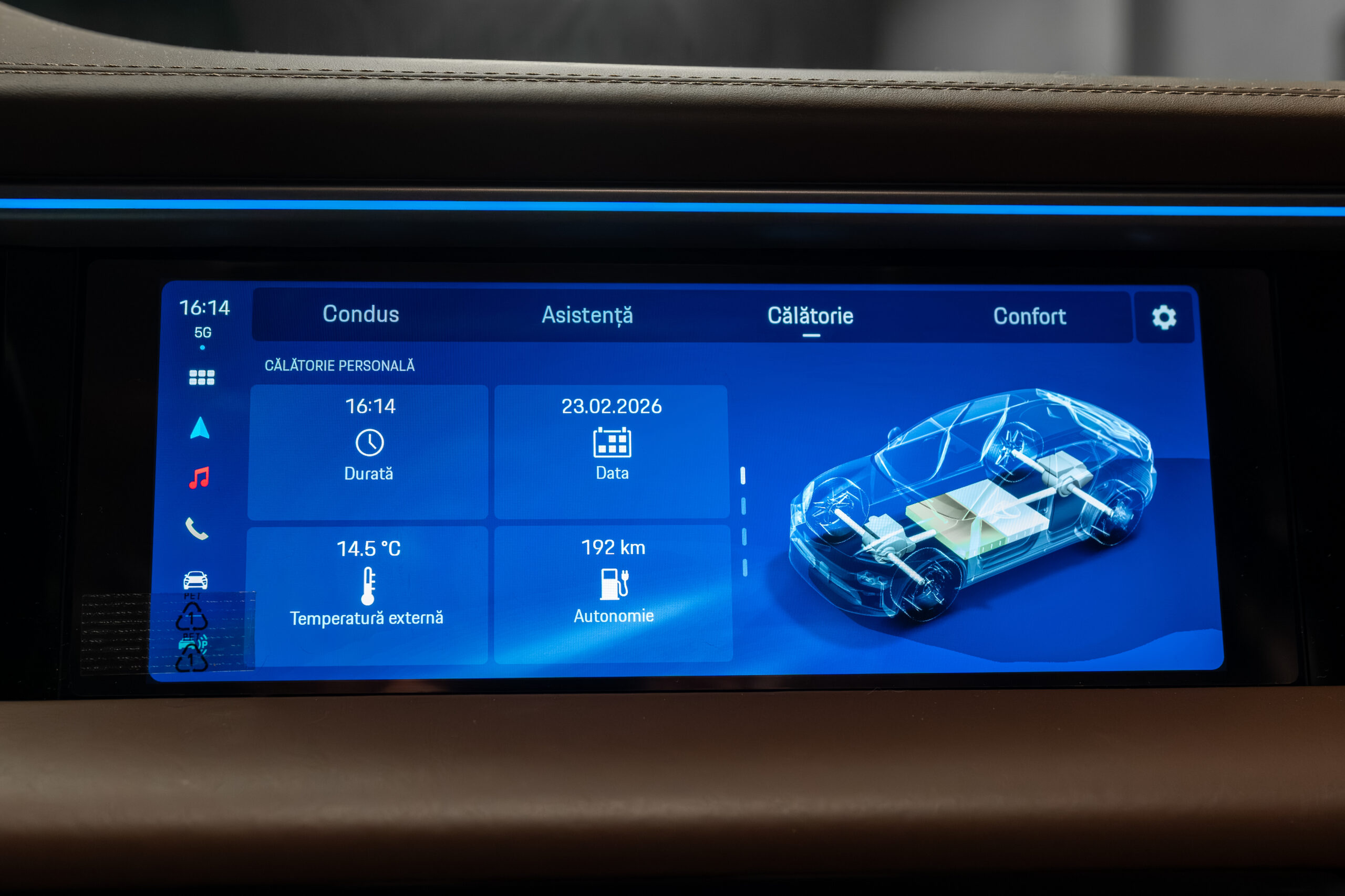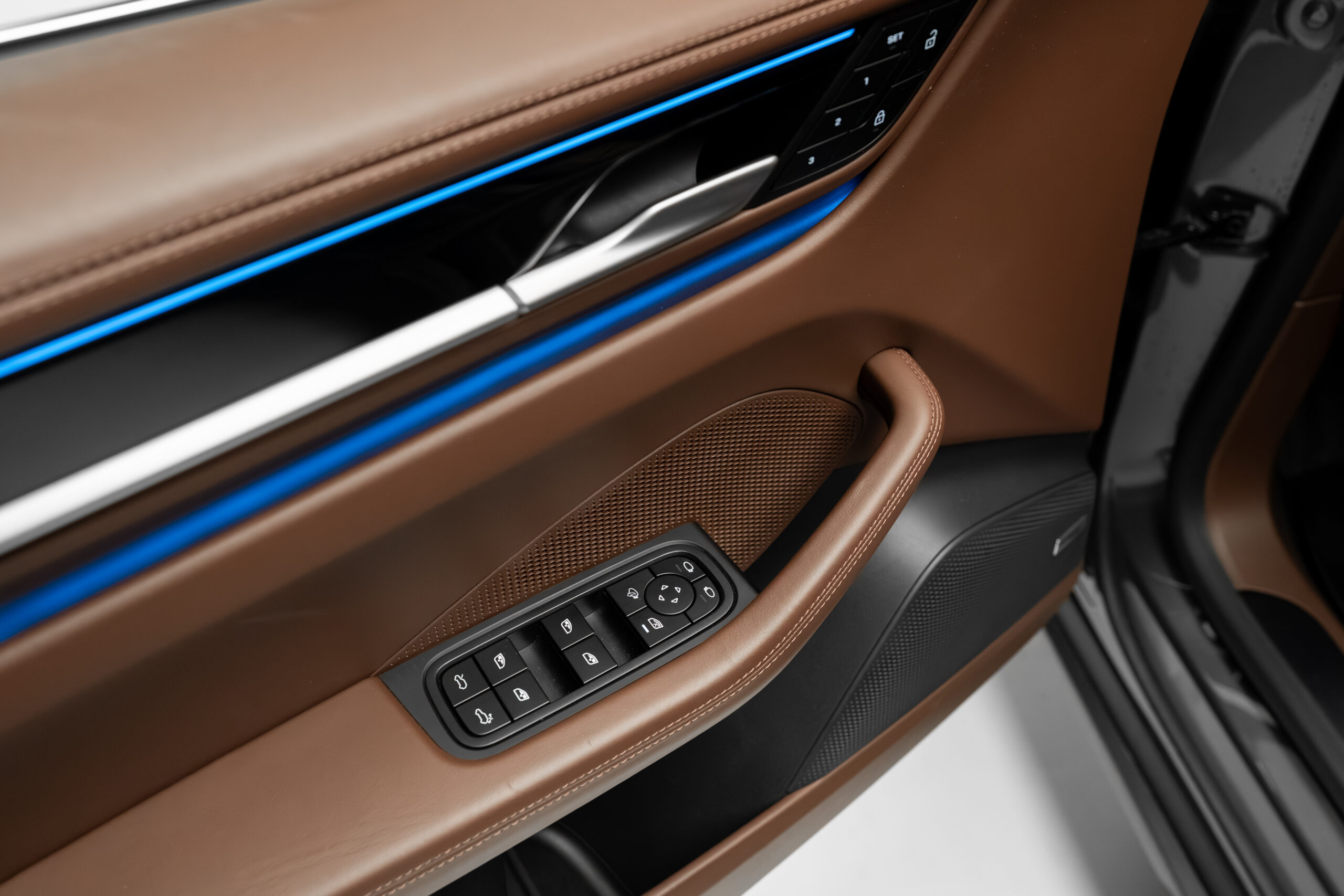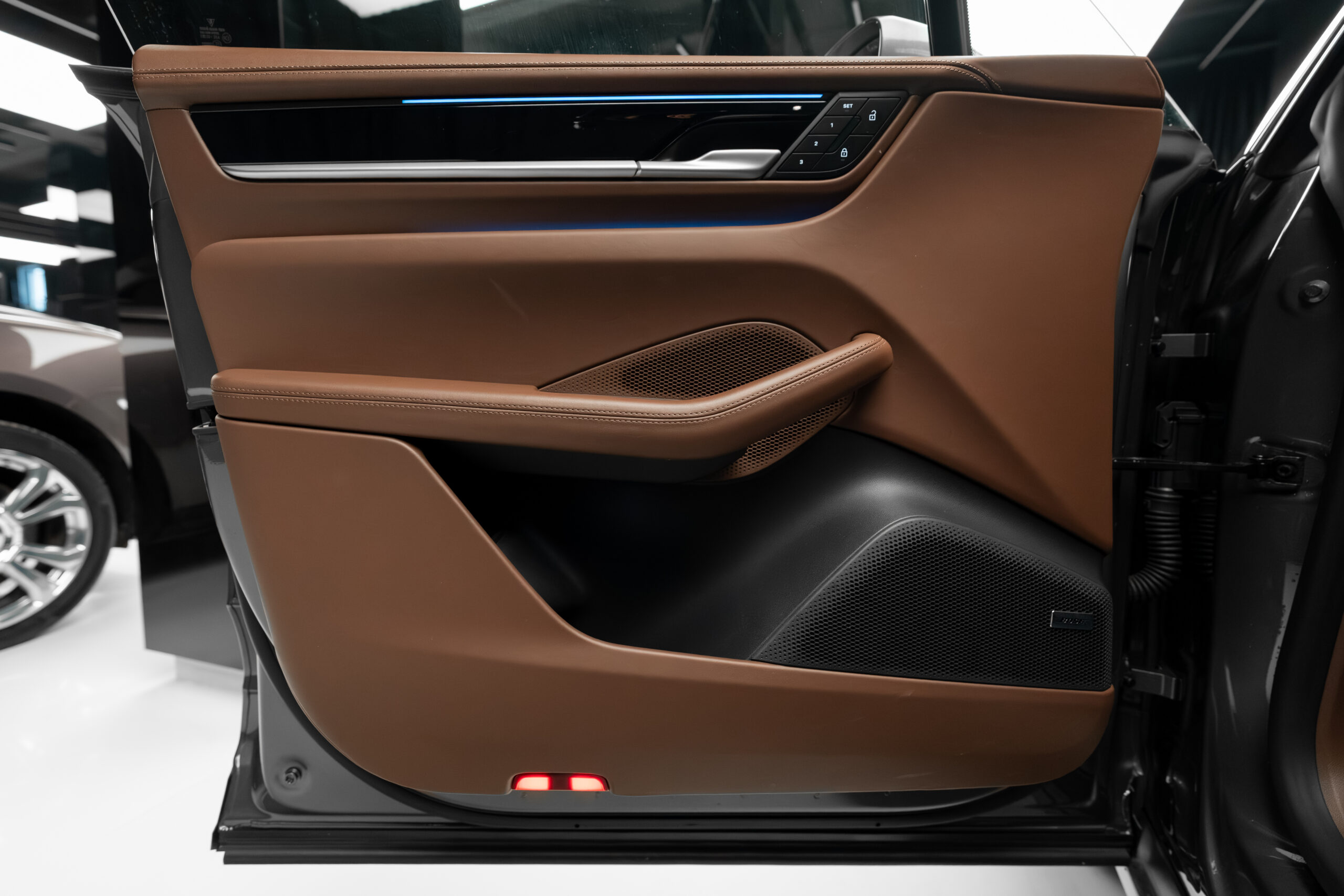 • Interior din piele de culoare maro