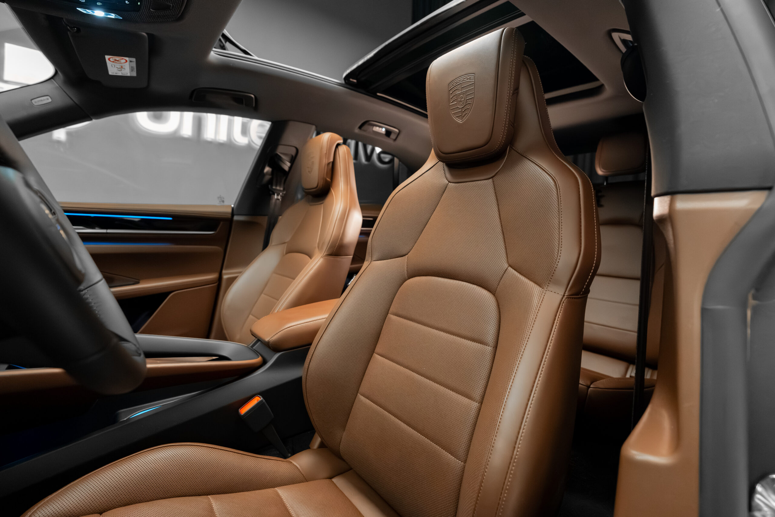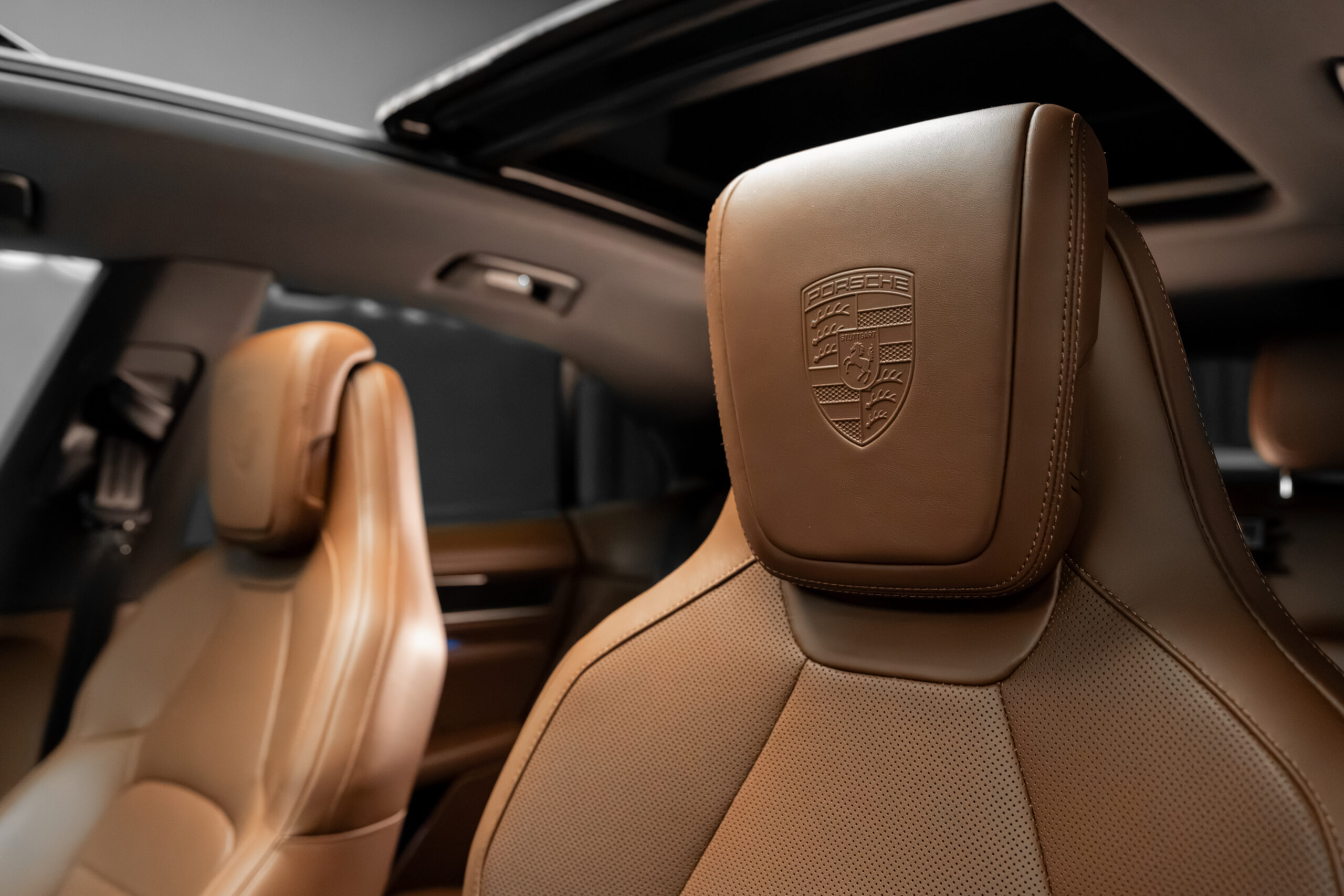 • Logo PORSCHE pe tetierele scaunelor (Exclusive Manufaktur)