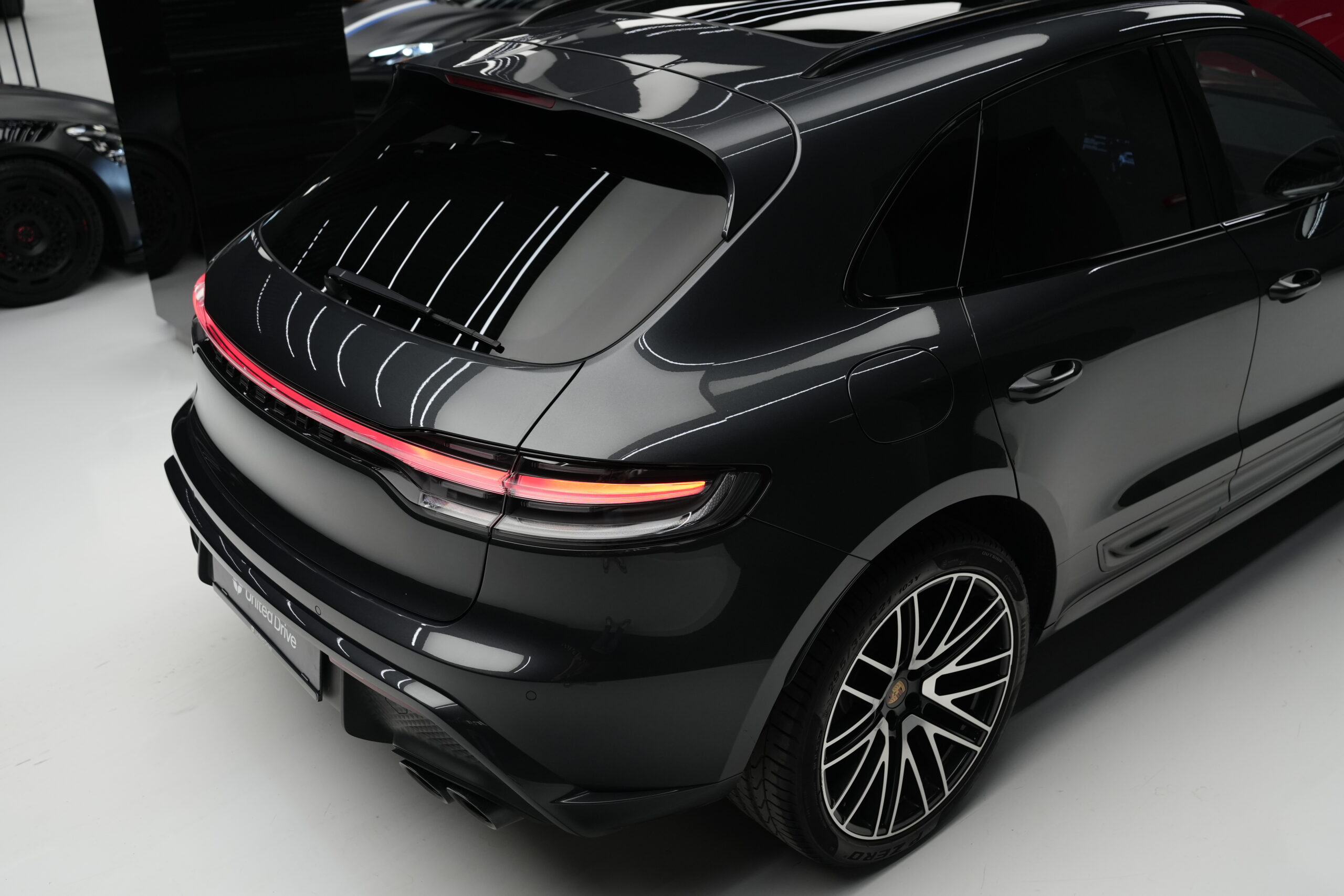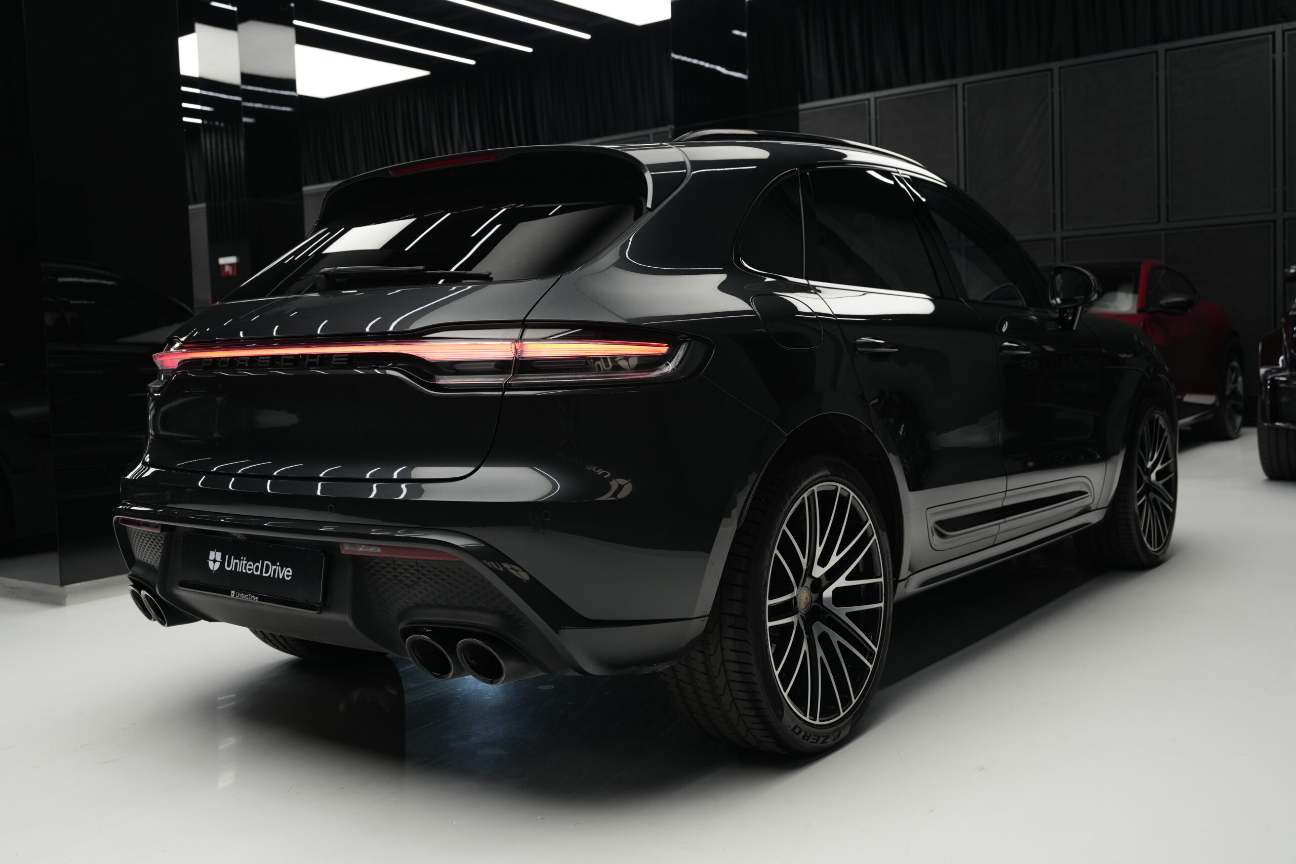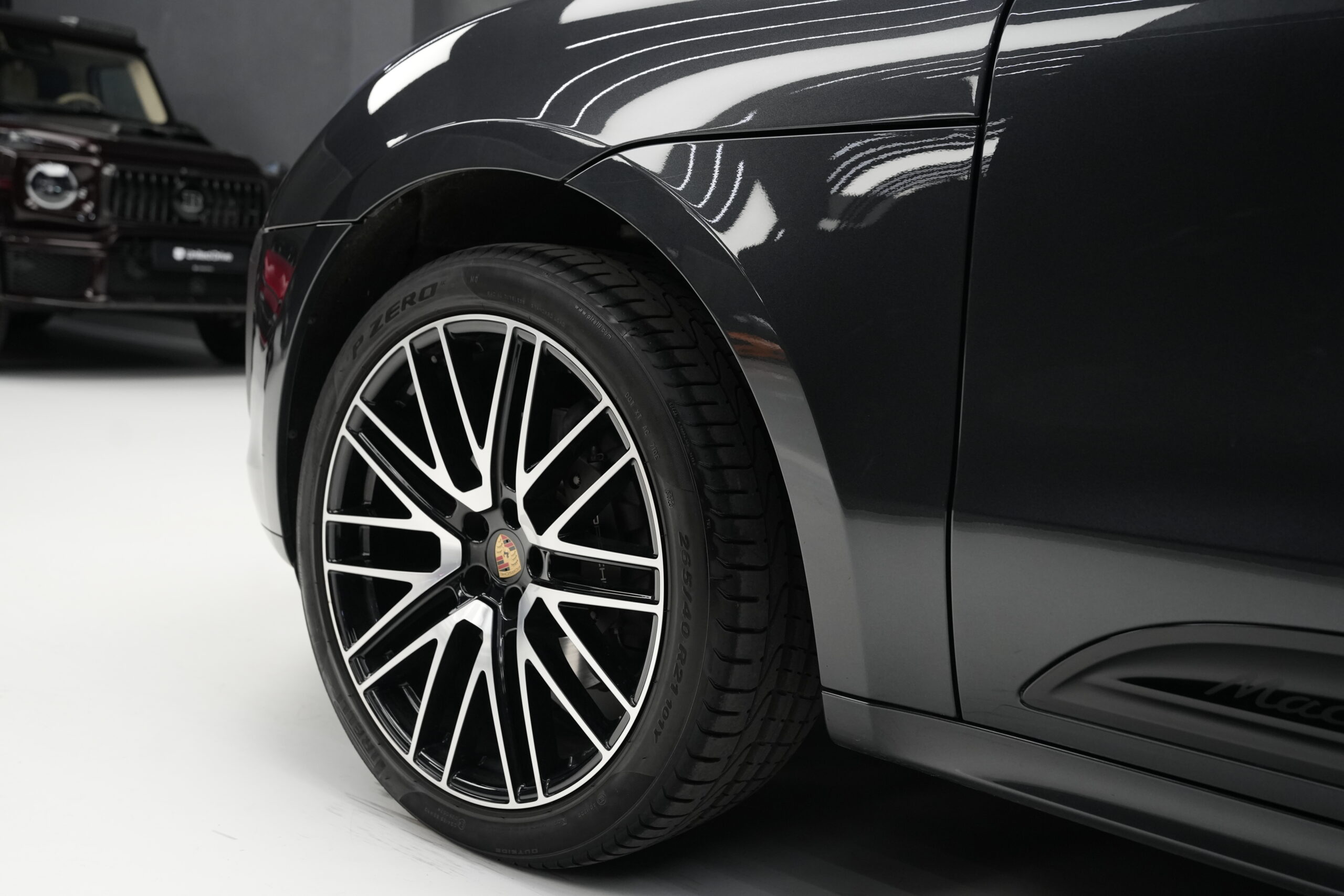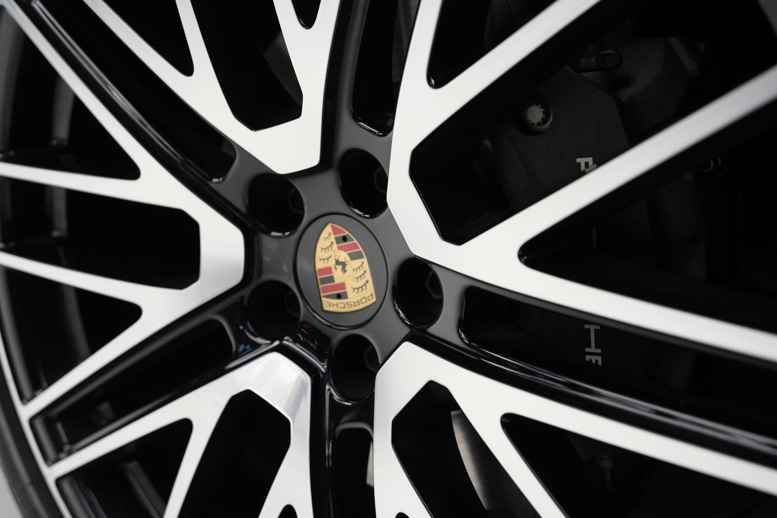 • Etriere frână de culoare neagră cu inscripția PORSCHE