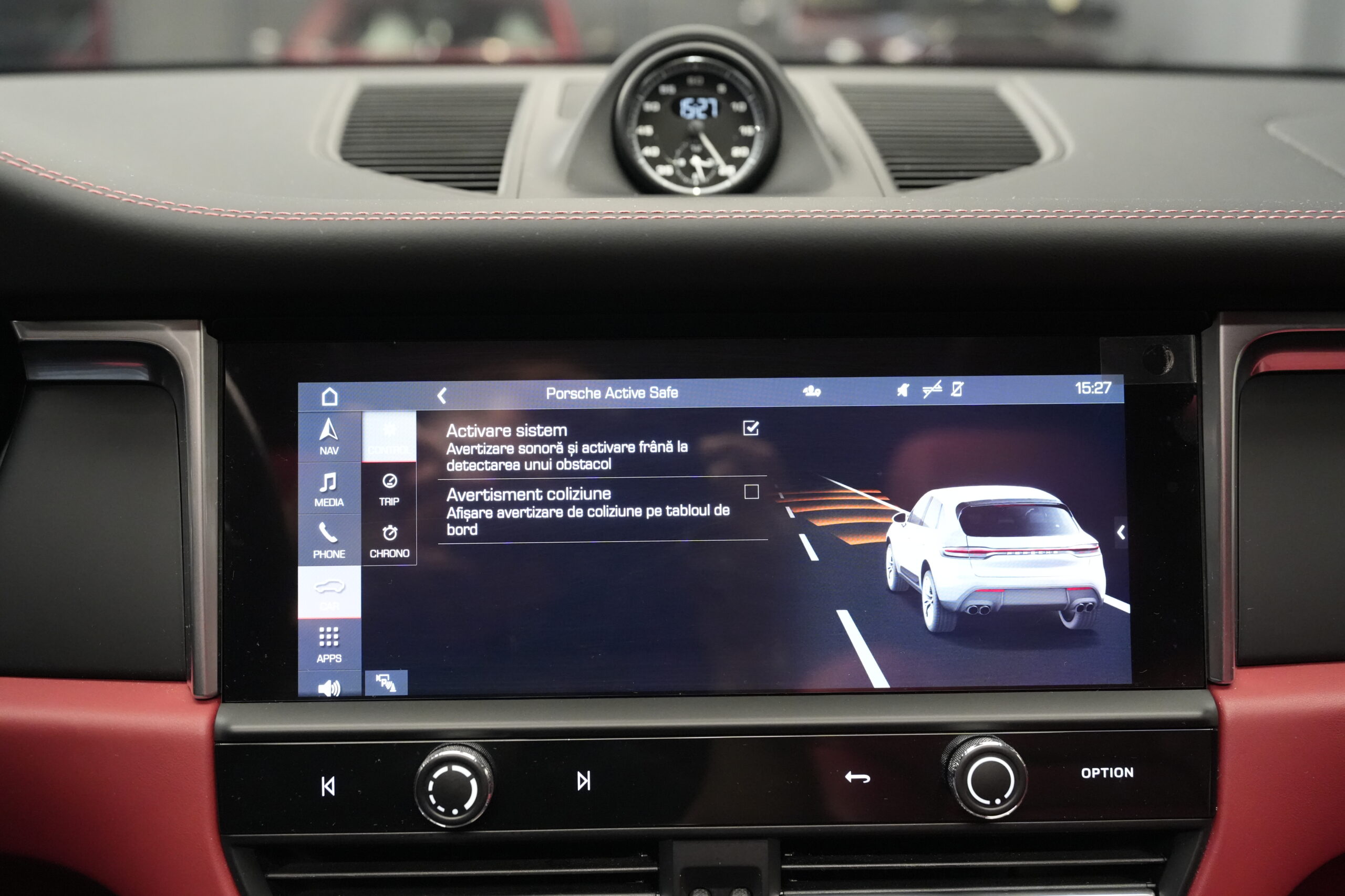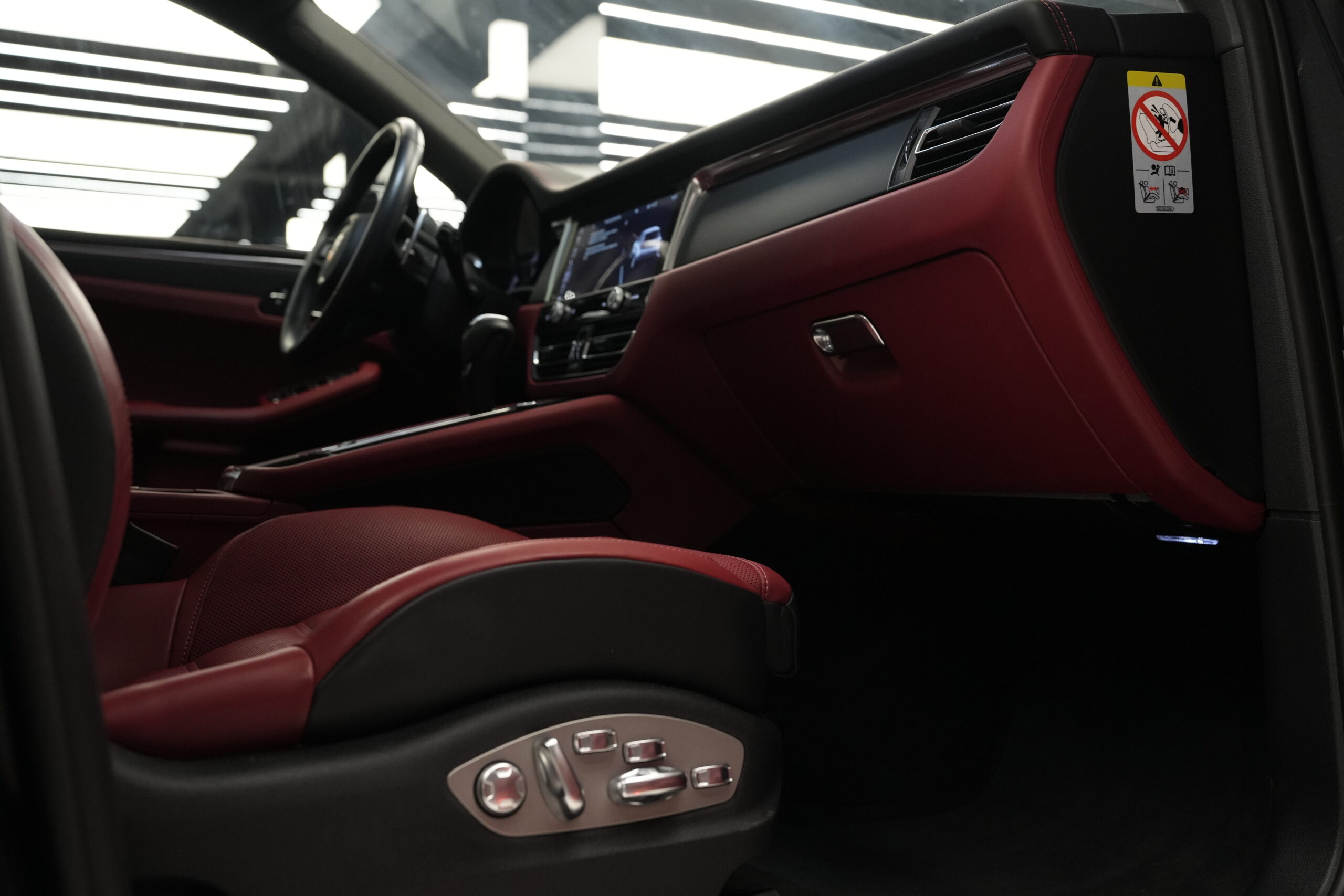 • Interior din piele de culoare Roșu Bordeaux